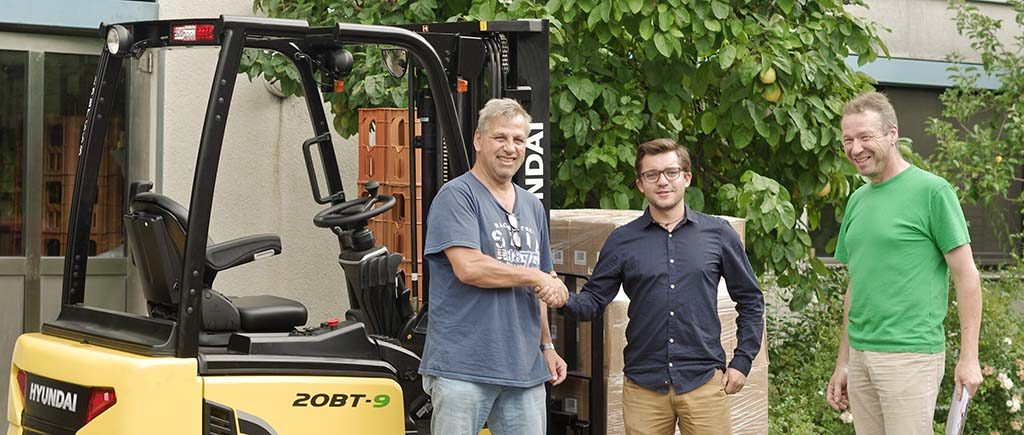 Nach einer Vorführung des gewünschten Gabelstaplers bei einem anderen Kunden der Firma Rhein Main Fördertechnik GmbH fiel unsere Wahl auf einen 3-Rad Elektrogabelstapler mit 2 Tonnen Traglast von Hyundai.